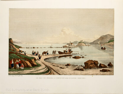 Aspiotis, Marie: Corfou. By Marie Aspiotis et René Puaux. Preface de Sir James Rennel Rodd. Trente-deux eaux-fortes originales de Lyc. Kogévinas et quinze reproductions en taille-douce de cartes et gravures anciennes. Paris, L’Art Grec, 1930. (2) Bl., 116, (3) S. Mit Frontispiz, 32 Orig.-Radierungen von Lyc. Kogévinas und 15 Reproduktionen nach alten Vorlagen. Broschierter flexibler Orig.-Pergamenteinband, illustriert.