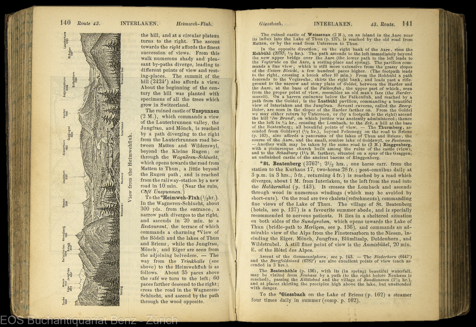 Baedeker, Karl: Switzerland, Italy, Savoy and the Tyrol. Handbook for travellers. Leipzig, Karl Baedeker, 1879. 8°. XLVIII, 470 S. Mit 24 Karten, 10 Pläne und 9 Panoramen. Lederband der Zeit mit verg. Rückentitel.