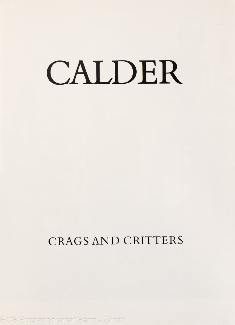 Calder, Alexander: Calder. Crags and critters. Zürich, Galerie Maeght, 1975. 4°. (12) Bl. mit Lithographien (2) auf dem Umschlag und gefalteter Doppelseit in der Mitte des Heftes. Illustrierter Papierumschlag.