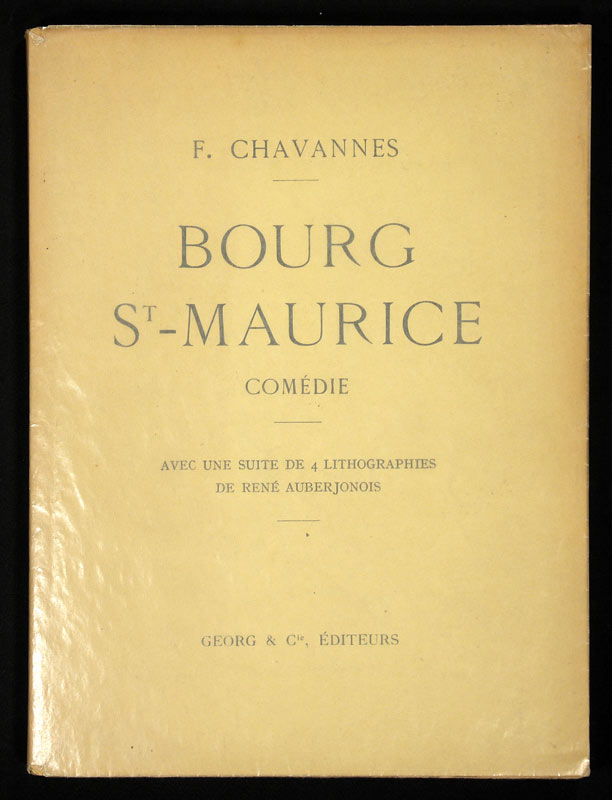 Chavannes, F.: Bourg St-Maurice. Comédie. Avec une suite de 4 lithogrphies de René Auberjonois. Genève, Georg & Cie., 1922. 8°. 110 (2) S. Mit 4 lithogr. Tafeln (lose). Orig.-Broschur mit Pergaminumschlag.