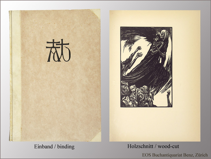 Die Offenbarung Sankt Johannis. Hellerau, Avalun-Vlg, 1923. 4°. (88) S. Mit 1 Holzschnitt-Vignette u. 9 ganzs. Holzschnitten von Bruno Goldschmitt. Orig.-Halbpergamentband (leicht stockfleckig). = “33. Avalun-Druck”.
