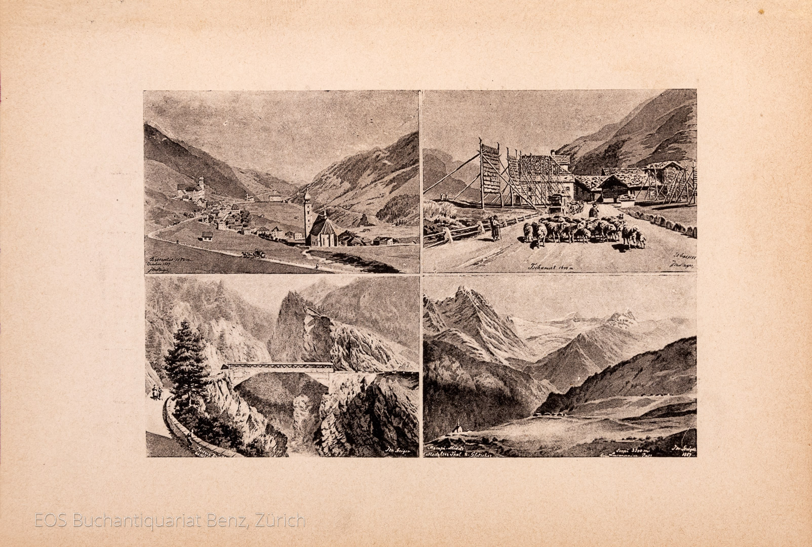Die Schweizerischen Alpenpässe und die Postkurse im Gebirge. Offizielles illustriertes Posthandbuch. Bern, Commissions-Verlag von Schnid, Francke & Cie, 1892. 8°. S. II-XIV, 327 S. Mit 1 illustr. Titel, 132 Abb. auf 81 Tafeln. Gold- u. schwarzgepr. Orig.-Leinenband.