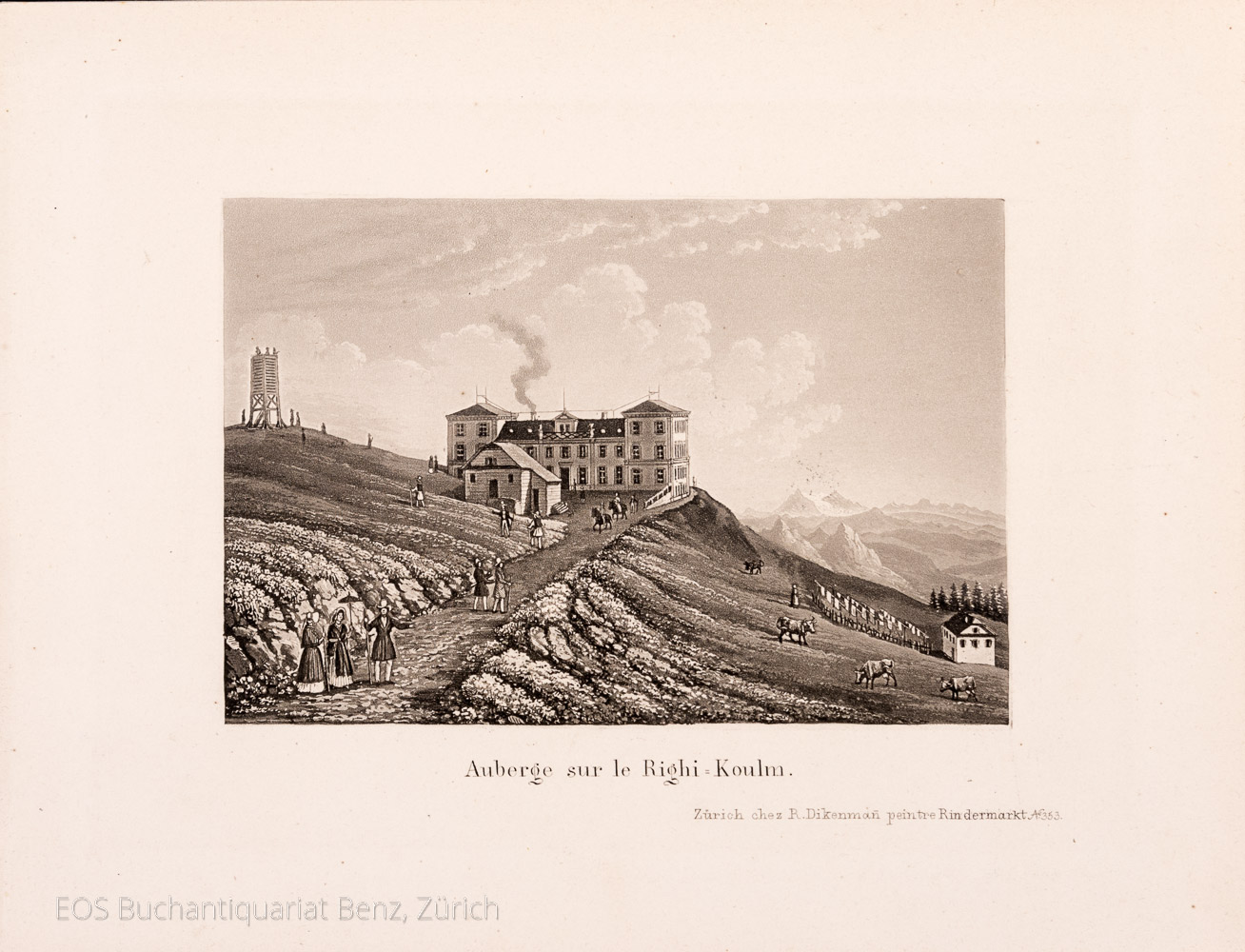 Dikenmann, Rudolf: Souvenir du lac de Lucerne et ses environs. Righi, St. Gotthard etc. Zürich, R. Dikenmann, um 1850. Quer-8°. Mit 16 Aquatinta-Tafeln von Rudolf Dikenmann. Orig.-Broschur.