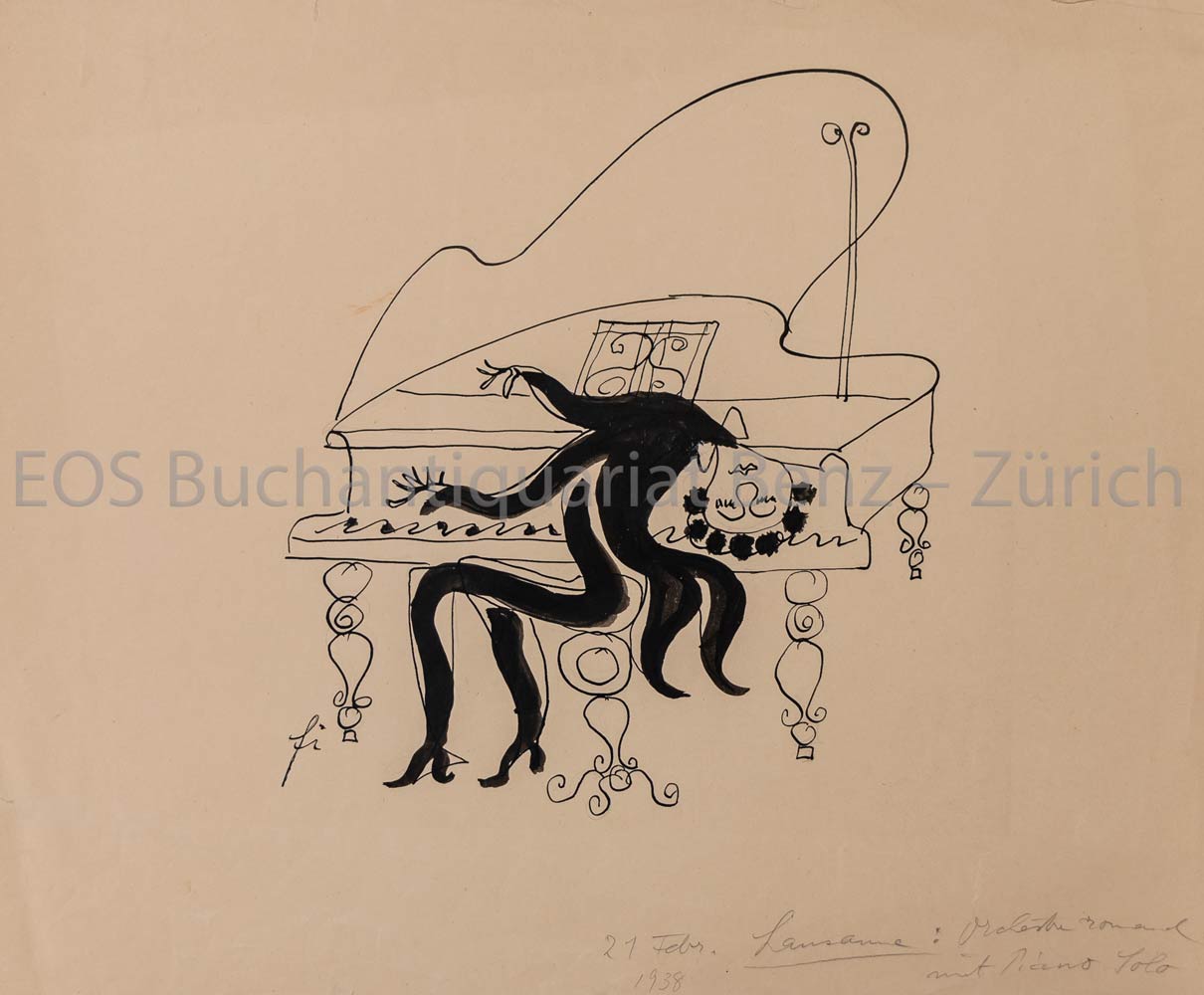 Fischer, Hans (1909–1958):  Orchestre romand mit Piano solo. Tuschzeichnung. Lausanne, 1938. Blattgrösse: 30,3 x 37,1 cm.
