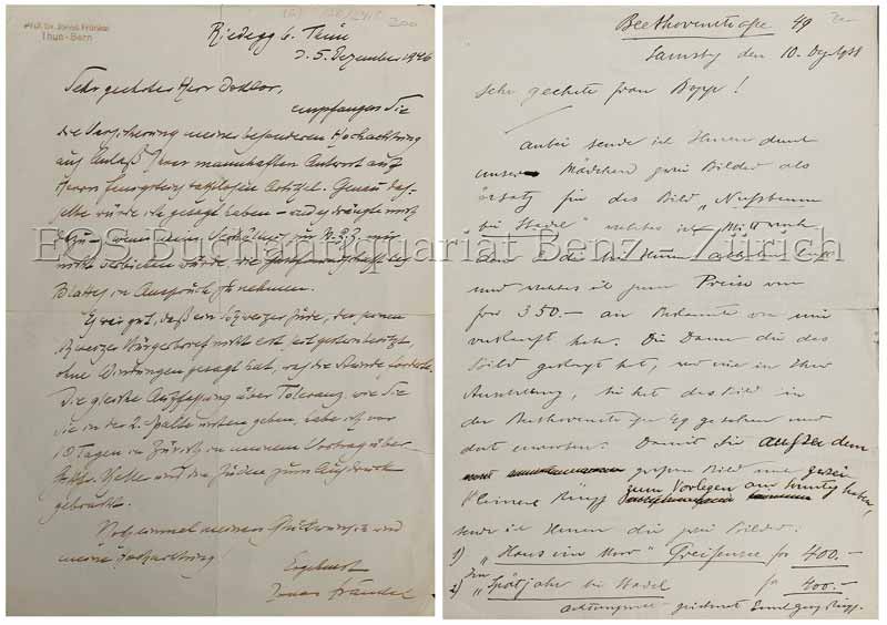 Jonas Fränkel war Herausgeber verschiedener Werke, darunter der historisch-kritischen Ausgabe “Gottfried Keller. Sämtliche Werke. Bern u. Erlenbach (bis 1927), Benteli (bis 1949) u. Rentsch (1926-1949)” und “Goethes Briefe an Charlotte Stein”. – Faltspur in Längs- u. Querrichtung sowie leicht knitterfaltig u. mit 3 kl. Einrissen am recht Rand. Etwas gebräunt.