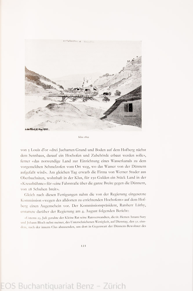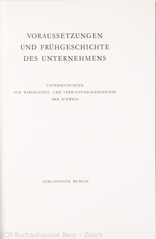 Geschichte der Ludwig von Roll’schen Eisenwerke. Erster Band. Voraussetzungen und Frühgeschichte des Unternehmens. Gerlafingen, Institut Orell Füssli AG, Zürich. 1953. Gross-4°. 319 S., mit zahlreichen Illustrationen. Roter Maroquin-Einband in Pappschuber.
