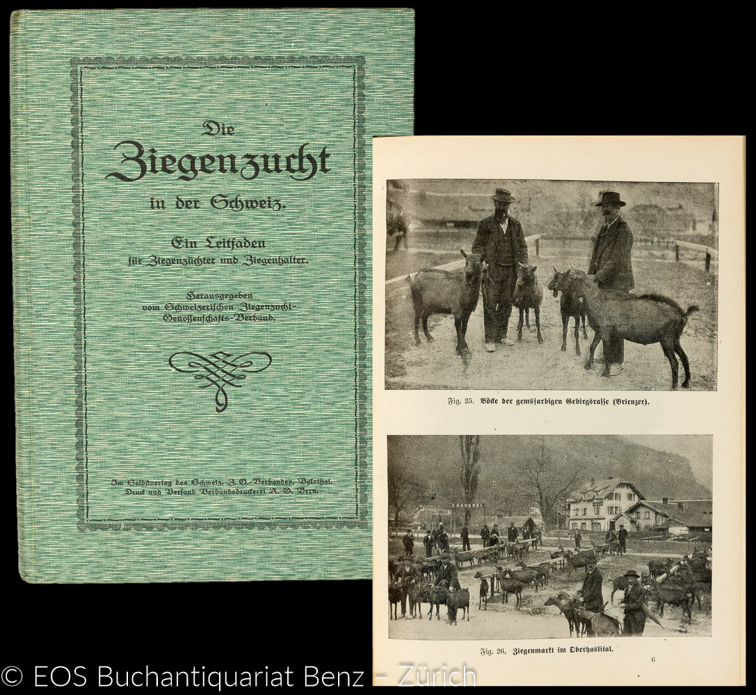 Gräff, Hermann (Red.): Die Ziegenzucht in der Schweiz. Ein Leitfaden für Ziegenzüchter und Ziegenhalter. Hrsg. vom Schweizerischen Ziegenzucht-Genossenschafts-Verband. Bern, Verbandsdruckerei, 1923. 8°. 258 S. Mit 1 gef. Tafel und zahlr. Abb. im Text. Orig.-Leinenband mit Deckel- und Rückentitel (minim bestossen).