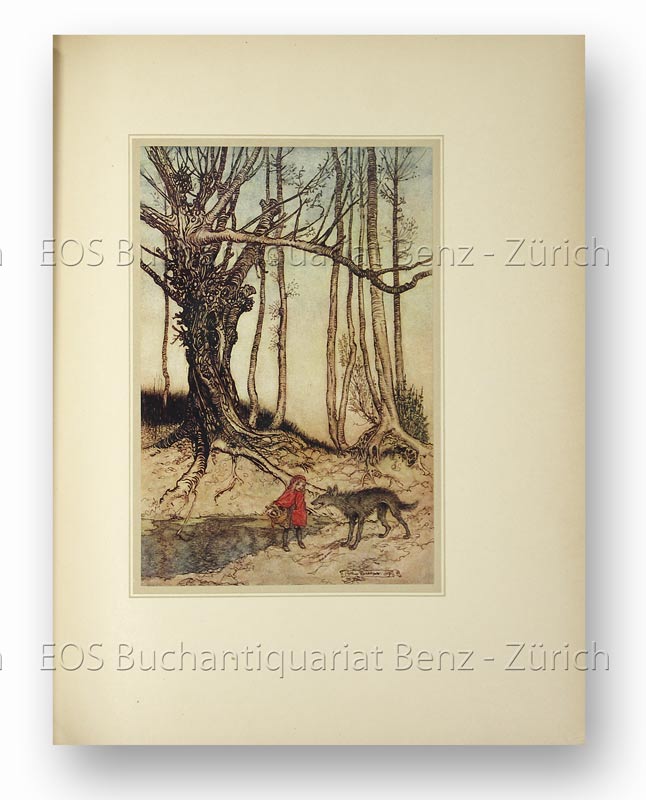 Rackham. – Guyot, Ch(arly): Le printemps sur la neige et d’autres contes du bon vieux temps. Paris, Edition d’Art, H. Piazza, 1922. 4°. 103 (5) S. Mit 16 mont. farb. Illustr. auf Tafeln u. mehreren Textillustr. nach Arthur Rackham. Pergamentband des 20. Jahrhunderts mit Aussenkantenvergoldung, goldgepr. Rückenschild u. Kopfgoldschnitt sowie mit eingebundenen Orig.-Umschlägen.