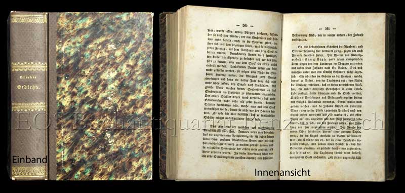 Ohne den vorderen fliegenden Vorsatz. Mit handschr. Besitzereintrag auf dem Titelblatt. Durchgehend stockfleckig. Einband stärker berieben und bestossen.