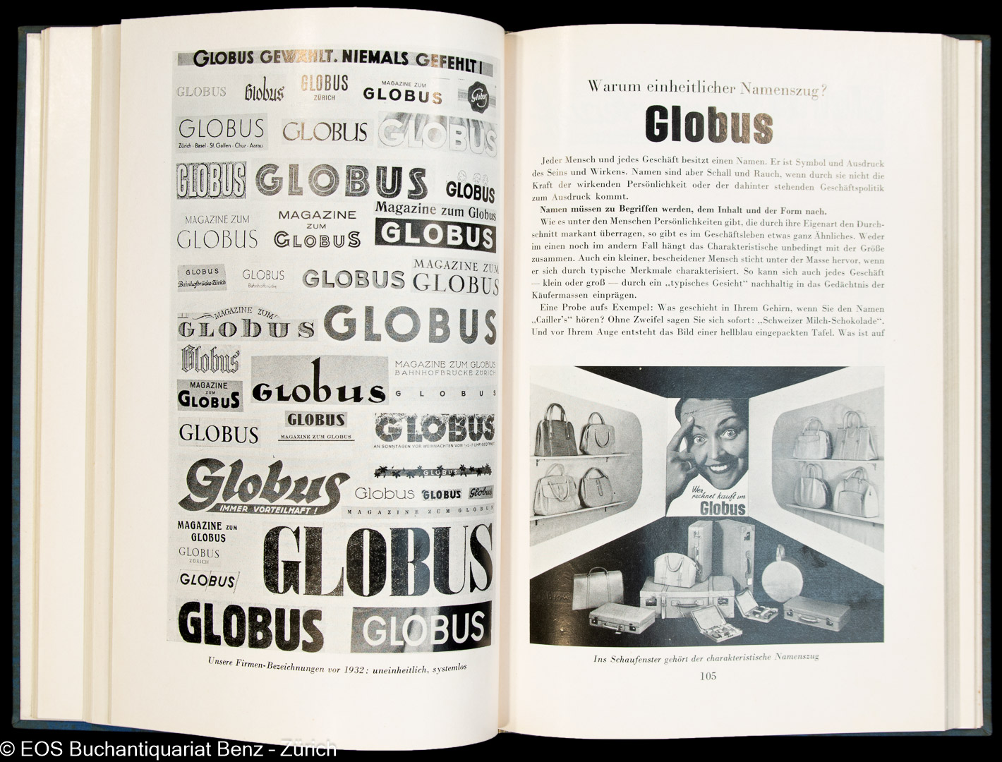 Haus-Zeitung der Magazine zum Globus. Zürich, Globus, 1938. Mit Textillustrationen. Orig.-Leinenband.