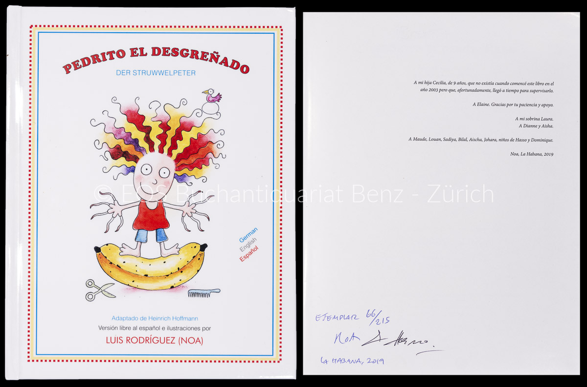 Kubanische Struwwelpeter. Herausgegeben von NOA-Art & dohaböhme. Dohaböhme steht für Hasso Böhme, einem aktivien und begeisterten Sammler von Struwwelpeter-Ausgaben aller Art und Auflagen. – Limitiete und nummerierte Auflage von 215 Exemplaren. Hier die Nr. 70, signiert vom Künstler und Herausgeber. – Neuwertig. (Sprache: Spanisch / Espagñol / Spanish)