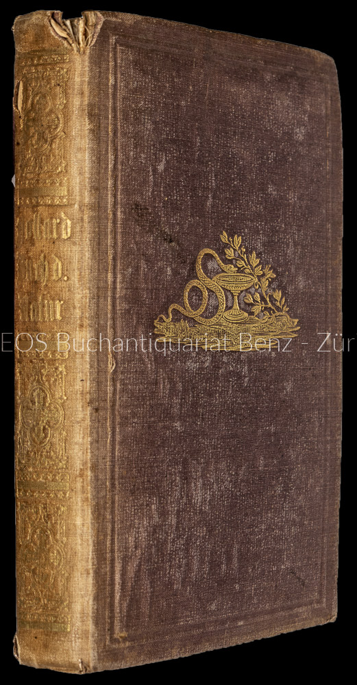 Hollard, Henri:  Das Buch der Natur oder das wissenswürdigste aus allen Gebienten der Naturwissenschaften für die Gebildeten aller Stände. Ein von der Gesellschaft der christlichen Moral in Paris gekröntes Werk. Aus dem Französischen übersetzt von A.v.H. Ludwigsburg, Ferd Riehm, 1856. 8°. 630 S. Leinenband der Zeit mit Rücken- und Deckelvergoldungen.