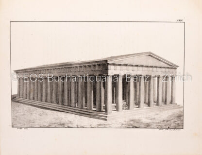Horner, J(ohann) J(akob), Hrsg.: Bilder des griechischen Alterthums oder Darstellung der berühmtesten Gegenden und der wichtigsten Kunstwerke des Alten Griechenlandes. Zürich, Orell, Füssli und Comp., 1823. Folio. IV, 178 S. Mit lith. Titel und 72 lith. Tafeln. Halbldr. d. Zt. mit rotem R’schild.