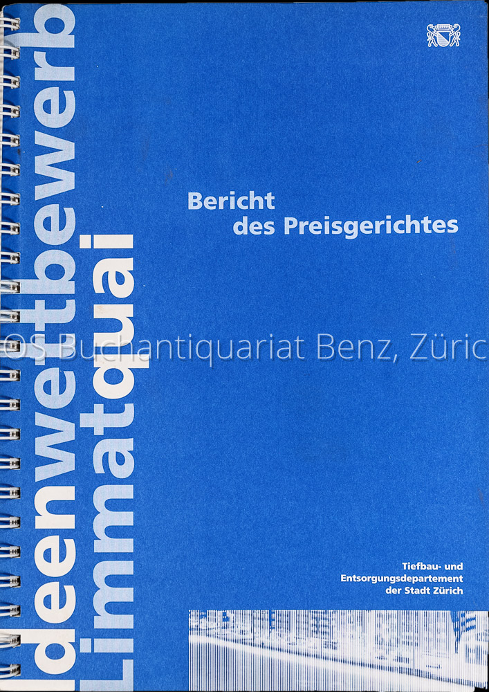 Ideenwettbewerb Limmatquai. Bericht des Preisgerichtes. Zürich, Tiefbau- und Entsorgungsdepartement der Stadt Zürich, ca. 1998. 4°. Mit 31 eingereichten Projekten. Spiralbindung mit Orig.-Umschlag.