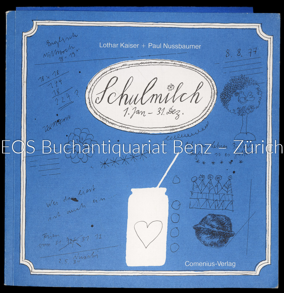 Originalzeichnung von Paul Nussbaumer. Kaiser, Lothar;  Schulmilch. 1. Jan.- 31. Dez. Hitzkirch, Comenius, 1979. 8°. 104 Seiten. Mit zahlreichen s/w Zeichungen von Paul Nussbaumer. Orig.-Brosch.