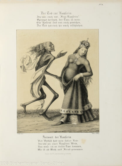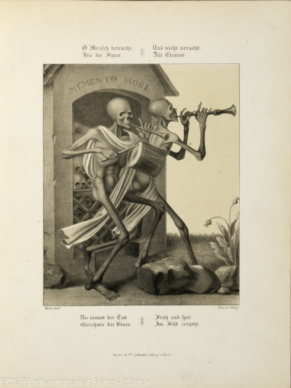 La danse des morts à Bâle de Jn. Holbein. = Basler-Todtentanz von Hans Holbein. In Basel, herausgegeben von Hasler & Cie., 1840 oder später. 4°. 41 Bl. Mit 40 Lithografien nach Hans Holbein. Gold- und blingeprägter Orig.-Leineband mit neuem Lederrücken.