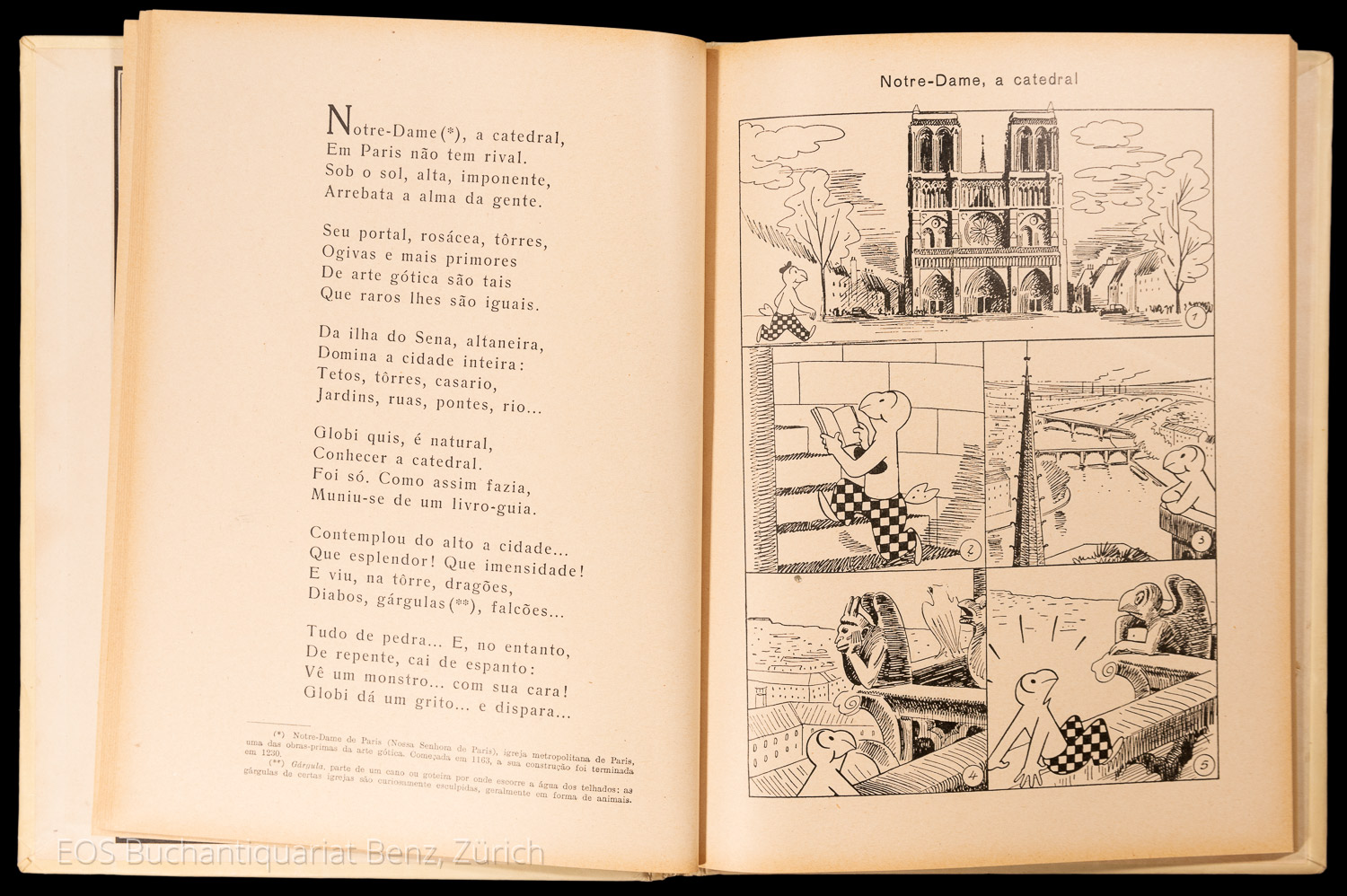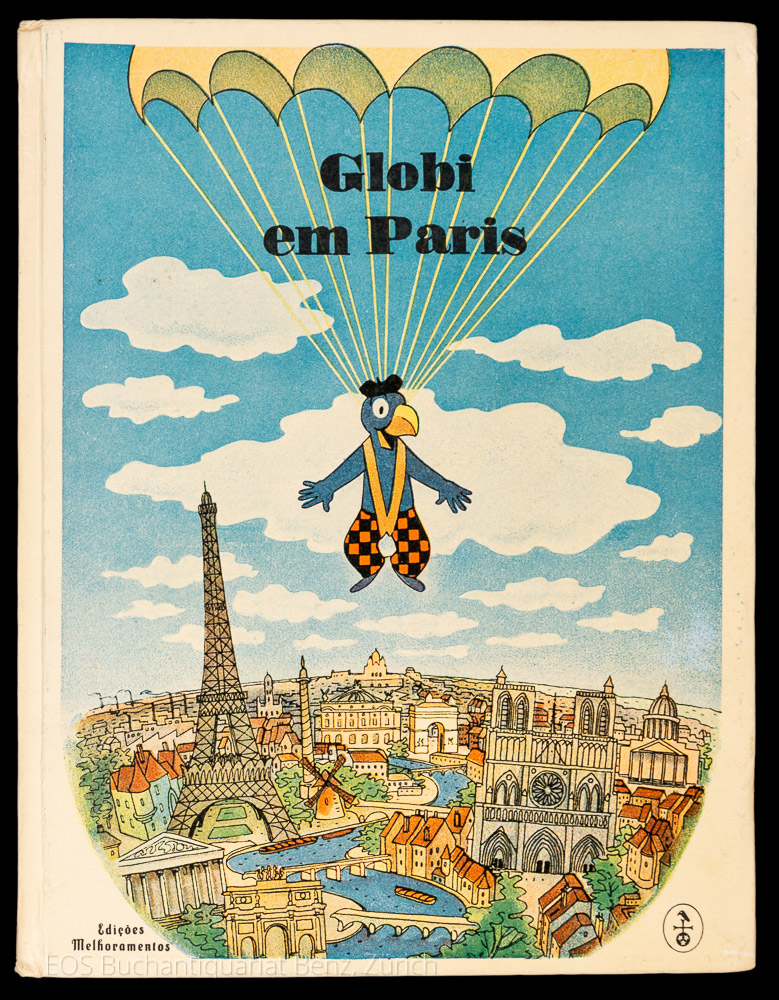 Portugiesische Ausgabe des Globibandes: “Globi erlebt Paris”. – Einband berieben. Mit Gebrauchsspuren. (Sprache: Portugiesisch / Portuguese)