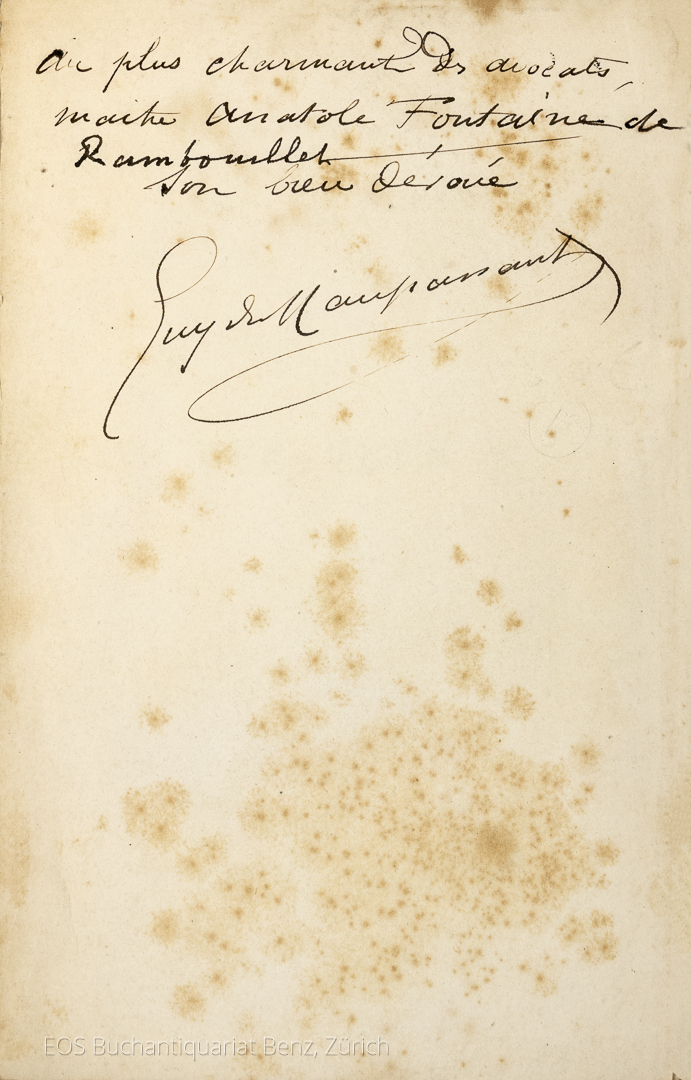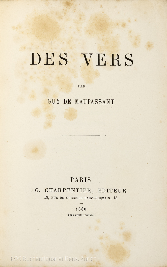 Maupassant, Guy de: Des vers. Paris, G. Charpentier, 1880. 8°. (3) Bl., 209 S., (2) Bl. Neuer Pappband (Orig.-Umschlag miteingebunden).