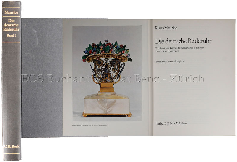 Maurice, Klaus: Die deutsche Räderuhr. Zur Kunst und Technik des mechanischen Zeitmessers im deutschen Sprachraum. München, Beck, 1976. 2 Bände. 4°. X, 321 S.; (2) Bl., 125 S., Mit zahlr. Abb. Orig.-Leinenband.