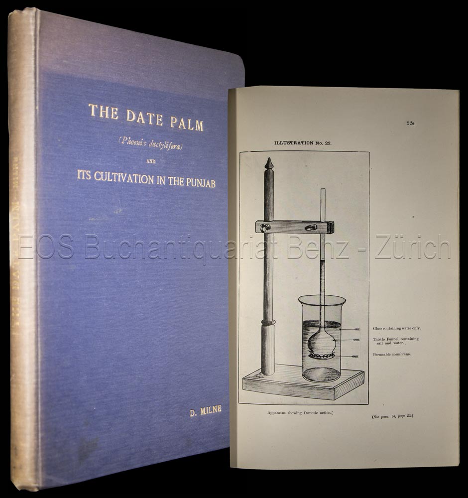 Milne, David:  The Date Palm and its Cultivation in the Punjab. New Dehli, Government, 1918. 3rd edition. 4°. XX, 153 p. With 50 plates. Orig. cloth.