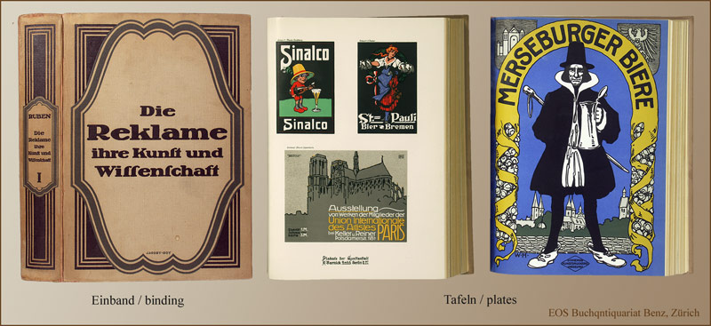 Ruben, Paul (Hrsg.): Die Reklame. – Ihre Kunst und Wissenschaft … einem Geleitwort von Victoar Mataja. Berlin, Verlag für Sozialpolitik, 1913. 1. (v. 2) Bdn. Lex-8°. XI, 360 S. Mit zahlr. z.T. farb. Illustr. Orig.-Leinenband (berieben, bestossen).