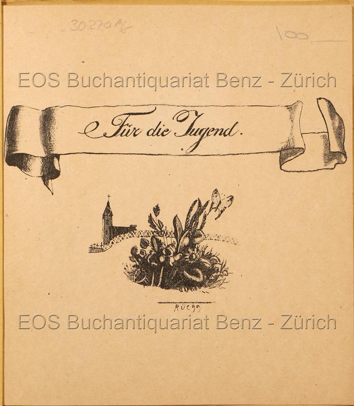 Rüegg, Ernst Georg:  Kinderbüchlein. Zürich, Verlag E.G. Rüegg, o.J. (um 1931). Kl.-4°. (1) Bl. Mit 1 lithogr. Titelblatt und 18 lithogr. Tafeln. Orig.-Broschur.
