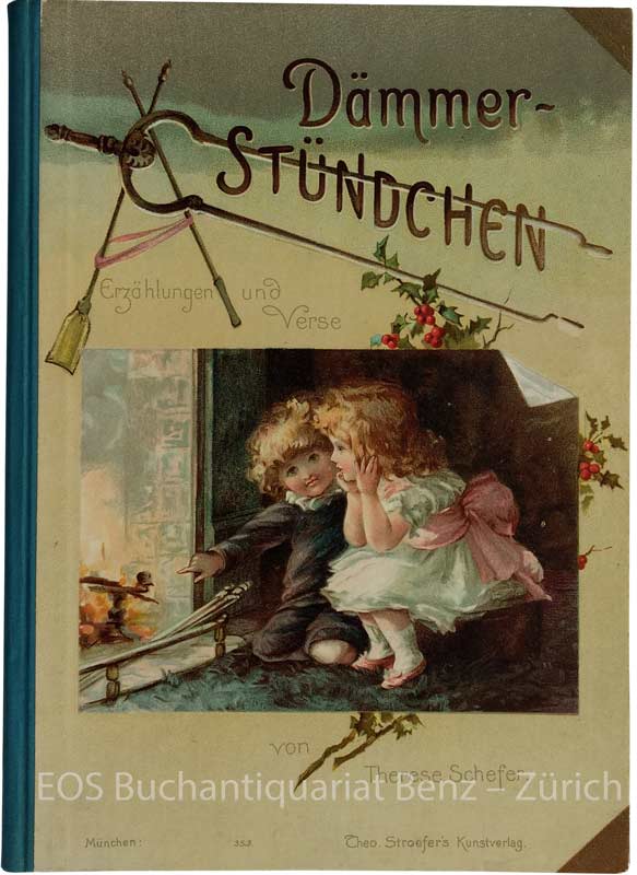 Schefer, Therese: Dämmer-Stündchen. München, Theo. Stroefer’s Kunstverlag, o. J. (um 1900). 8°. (32) S. Mit 6 ganzs. Chromolithografien und zahlr. Illustr. im Text. Farb. illustr. Orig.-Halbleinenband.