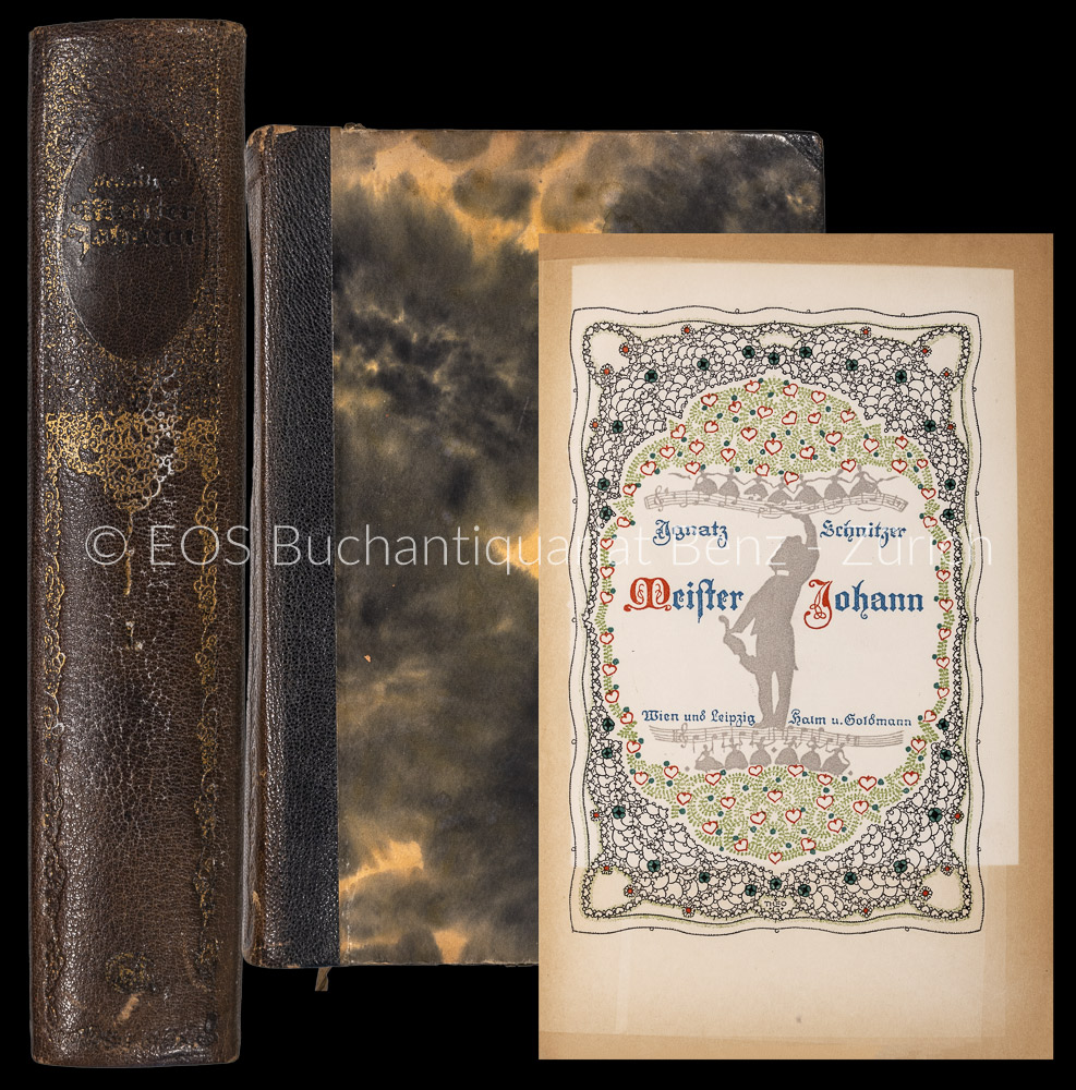 Schnitzer, Ignaz: Meister Johann. bunte Geschichten aus der Johann Strauss-Zeit. Wien, Halm und Goldmann, 1920. 2 Bände. Gr.-8°. 268 S.; 296 S. Mit reichem Buchschmuck, ganzs. Tafeln Porträts und Textillustr. Orig.-Halblederbände mit verblasster Rückenvergoldung.