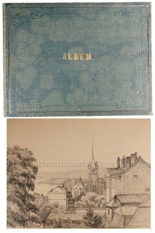 26 Bleistiftzeichnungen zwischen 1855 u. 1861 und 1 (nicht datierte) Tuschzeichnung. Einige Bilder bezeichnet und datiert, eine monogrammiert “St. (?) G. und eine signiert G.(?) Elliot. Neben einer Küstenlandschaft, Häusern, Kirchen und See- u. Flusslandschaften einige bezeichnete Ortschaften und Berge, wie Lausanne, Bex, Dent du Midi, Seefeld am See, Engelberg-Thal mit Birstenstock, Seelisberg mit Urirothstock, Bex mit Les Diablerets und Cham mit Rigi