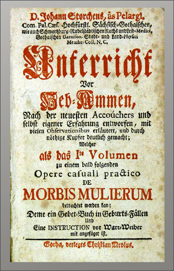 Storch, Johann: Unterricht Vor Heb-Ammen. (Ab Band 2): Von Kranckheiten der Weiber. Gotha, verlegts Christian Medius, (1746)-1751. 7 Bände (von 8). 8°. Mit 6 gestochenen Tafeln in Band 1. Pappbände der Zeit mit späteren, handschriftlichen Rückenschildern.