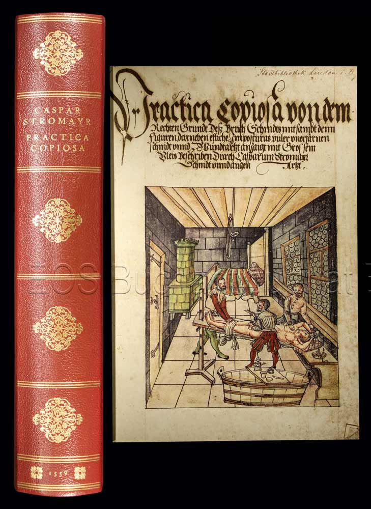 Stromayr, Caspar: Practica Copiosa. – (Faksimilierte Handschrift). München, Idion Verlag, 1978. 261 Bl., 270–242, Bl. 277, 279, 282, 285, 289 u. 294, 1 Bl. (Impressum). Mit zahlr. farb. Abbildungen. Orig.-Kunstlederband in Schuber.