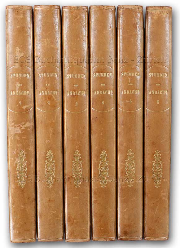 Stunden der Andacht zur Beförderung wahren Christenthums und häuslicher Gottesverehrung. Aarau u. Frankfurt a.M., Sauerländer, 1844. 6 Bände. 8°. 489 S. (2) Bl., 518 S. (2) Bl., 498 S. (1) Bl., 510 S. (1) Bl., 506 S. (1) Bl., 527 S. Halblederbände der Zeit.