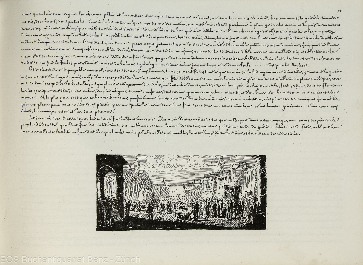 Töpffer, Rodolphe: Voyage à Venise. Genf, Schmid (und Schüttel), 1841. Quer-4°. Text: S. 2–109. Mit 156 Autographien. Leinenband der Zeit mit schlichter Vergoldung.