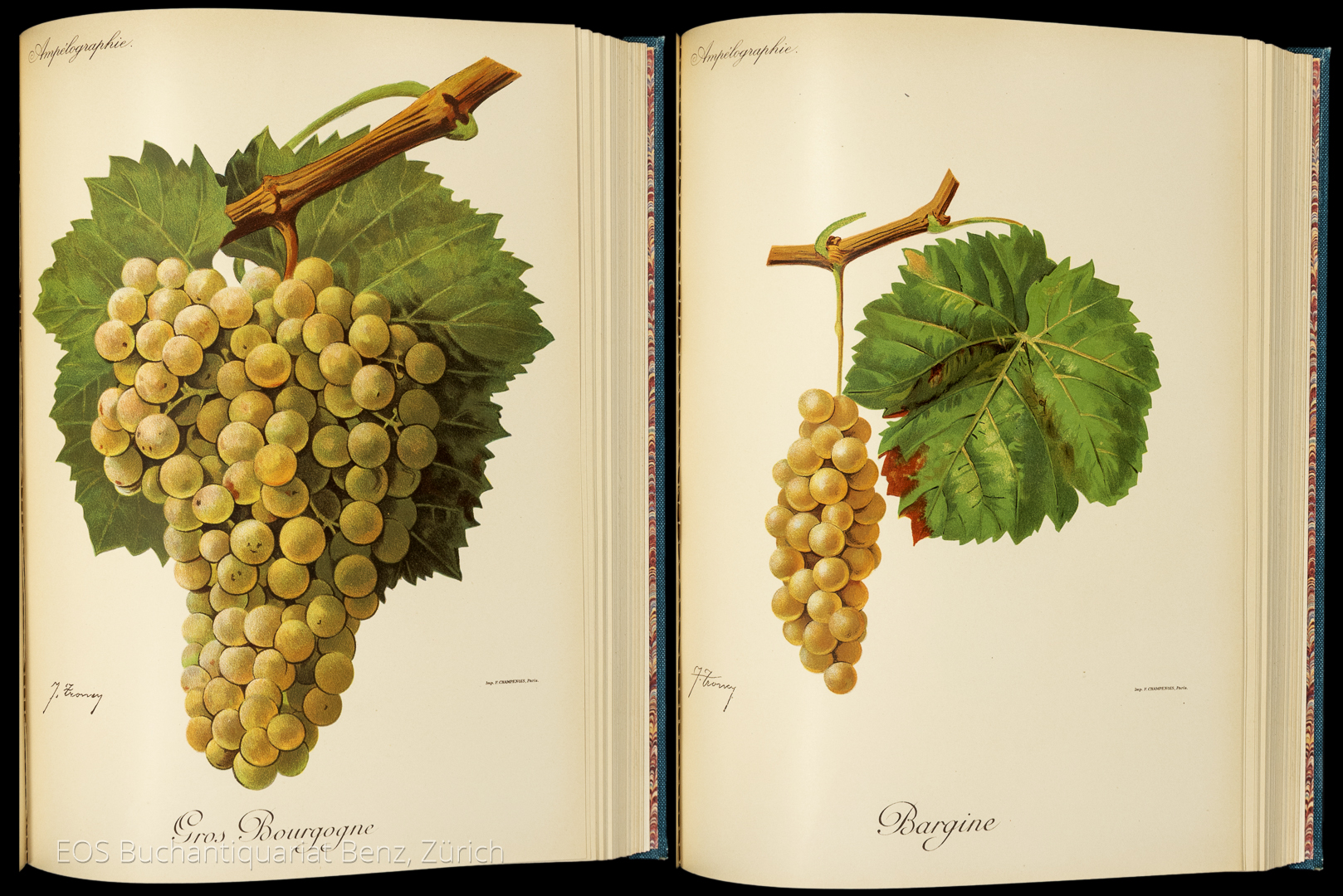 Reben – Trauben. Viala P. & Vermorel V. Ampélographie. Traiteé général de Vitculture. Paris 1901–1910. 7 Bände. 4°. Mehr als 3100 Seiten mit 570 (davon 500 farbigen) ganzseitigen Lithographien und 820 Illustrationen im Text. Leinenbände mit roten Rückenschildchen.