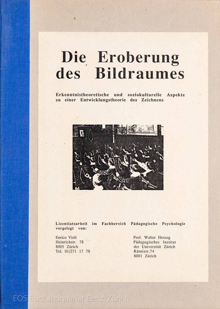 Violi, Enrico; Die Eroberung des Bildraumes. Erkenntnistheoretische und soziokulturelle Aspekte zu einer Entwicklungstheorie des Zeichnens. Zürich. (Eigenverlag). ca. 1980. 120 S. mit einigen schematischen Abbildungen. Halbleinenband.