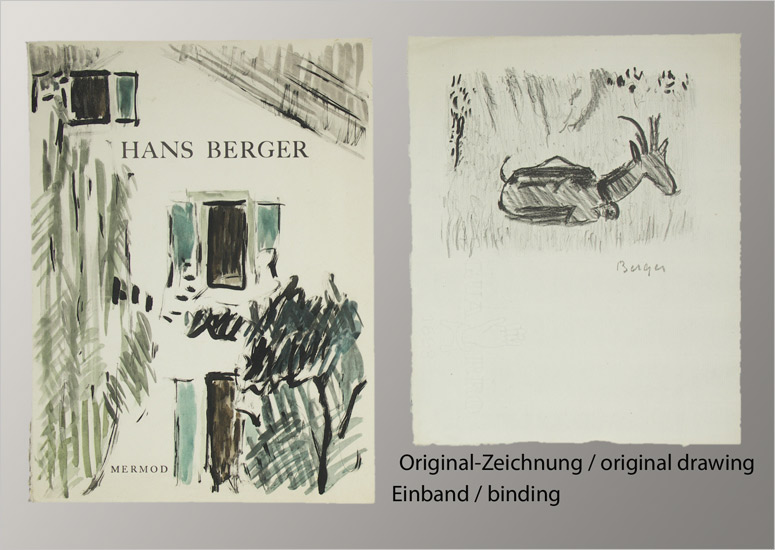Berger.- Wälchli, Gottfried: Hans Berger. Zeichnungen , Aquarelle, Gemälde. Lausanne, Mermod, 1954. 4°. 76 S. Mit 4 Abb. nach Photographien (dv. 2 Portraits), 35 (dv. 19 mont. farb.) Illustr. nach Gemälden u. Zeichnungen von Hans Berger. Illustr. Broschur (Rücken am Fuss mit 5 cm Einriss, leicht gebräunt).