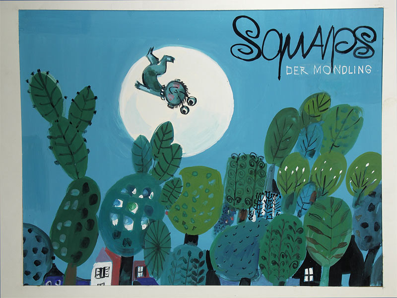 Original-Aquarell.- Ziegler, Ursina:  Squaps. Der Mondling. Zürich, Artemis, 1969. Quer-4°. 14 Bl. Mit z.T. ganzseitigen und farb. Illustraionen von Sita Jucker. Orig.-Leinenband (berieben und bestossen).