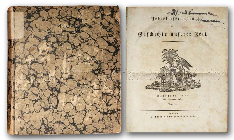 Zschokke, Heinrich, Hrsg.: Ueberlieferungen zur Geschichte unserer Zeit. Aarau, Heinrich Remigius Sauerländer, 1819. Gross-4°. 604 S., (3) Bl.