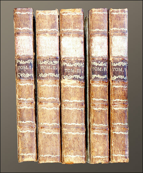 Vgl. Blake 22. – Wellcome II, 65. – Nachdruckausgabe. Erschien in erster Auflage von 1761-65 in 6 Bänden. Die vorliegende Ausgabe scheint in 5 Bänden komplett. Es existiert mit dem gleichen Verlagsnamen 1770 eine Ausgabe, mit dem Vermerk „deuxième édition“ auf dem Titel, in 6 Bänden. (vgl. Wellcome) – Einbanddeckel stark beschabt. Titel gestempelt. Vorsätze mit Leimschatten. Aus der Sammlung Walter Pfeilsticker. (Sprache: Französisch / Français / French)