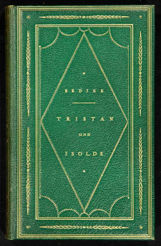 Sarkowski 19, 118 A. – Tristan und Isolde erneut von Joseph Bédier. Aus dem Französischen übersetzt von Rudolf G. Binding. Mit Nachbemerkungen vom Verfasser. – Mit Exlibris. Vorderer und hinterer Falz angeplatzt.