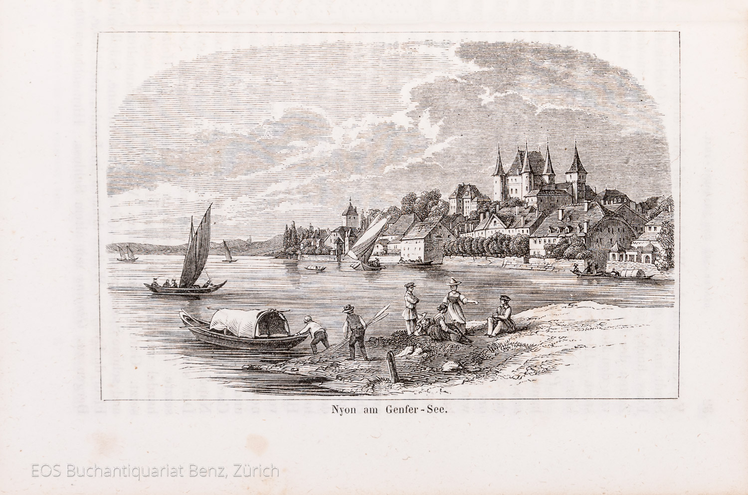 Berlepsch, Herman Alexander: Der Bodensee und das Appenzeller Land. Ein Führer für Fremde.– (II:) Graubünden. Ein Führer für Fremde. – (III:) Das Berner Oberland. Ein Führer für Fremde. – (IV:) Der Genfer-See und das Chamouny-Thal. Ein Führer für Fremde. Leipzig, J. J. Weber, 1858. 4 in 1 Band. 8°. Mit 87 Abbildungen im Text und 8 Karten. Halbleinenband der Zeit.