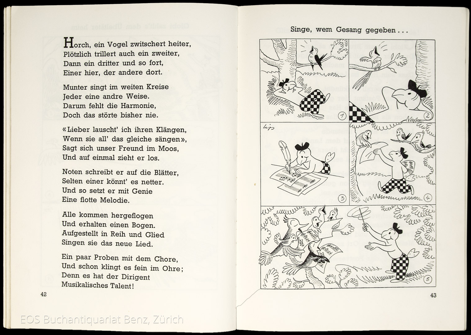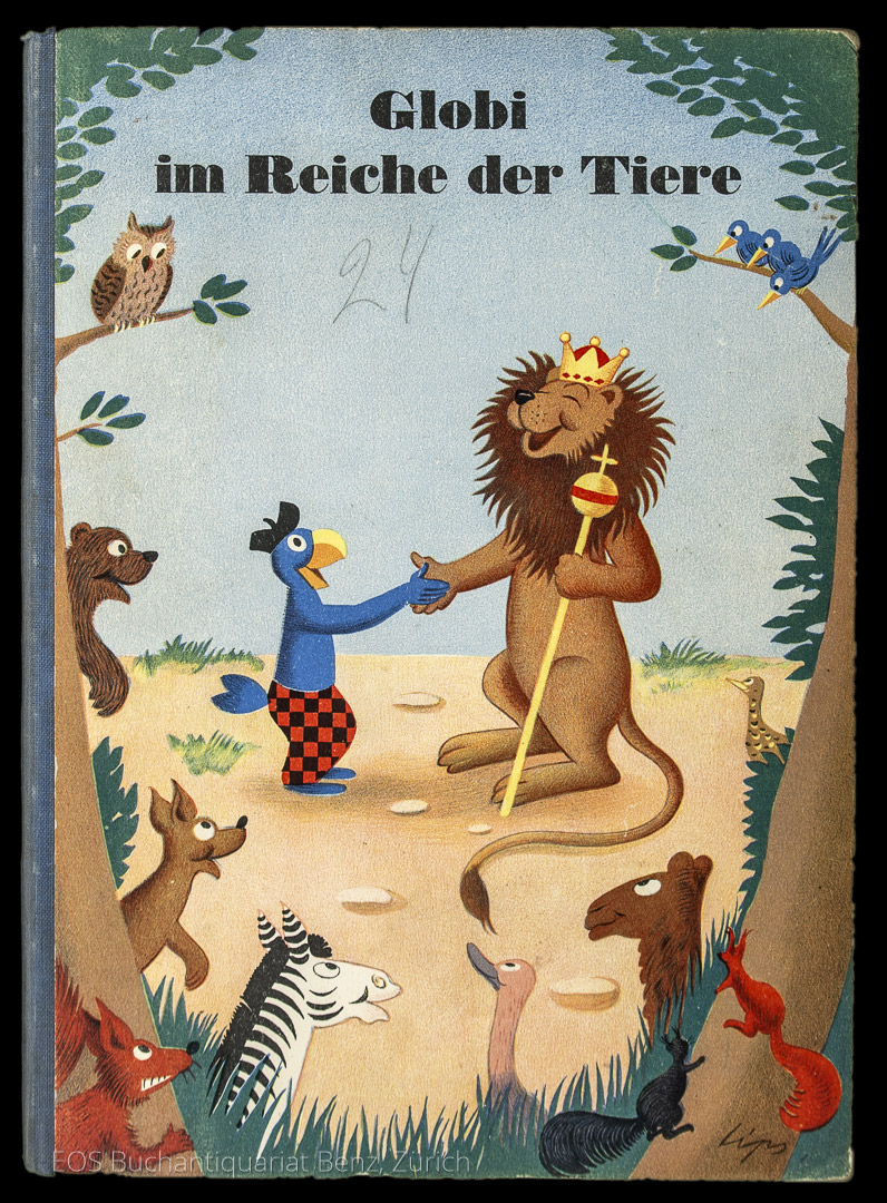 Bruggmann, Alfred: Globi im Reiche der Tiere. Zürich, Globi Verlag, 1954. 1. bis 50. Tausend. 4°. 40 Bl. Mit zahlreichen Illustrationen v. Robert Lips.