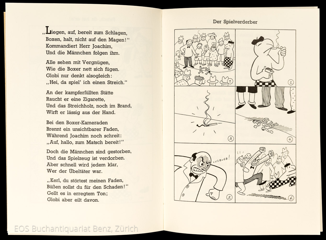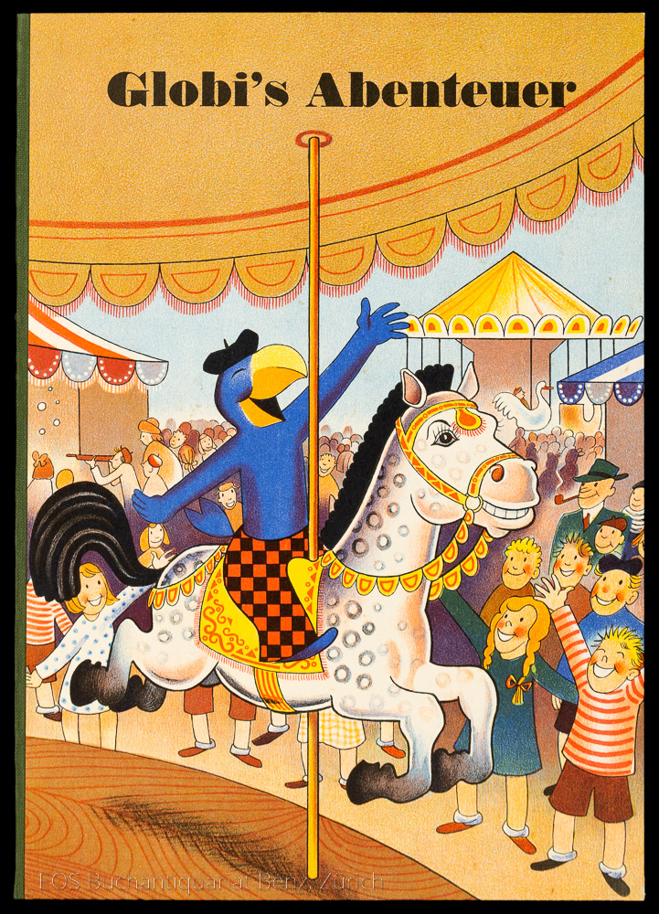 Bruggmann, Alfred: Globi’s Abenteuer an der Chilbi. Zürich, Globi Verlag, 1947. 1. Auflage. Gr.-8°. 50 Bl. Mit zahlreichen Illustrationen v. Robert Lips. Farbig illustrierter Orig.-Halbleinenband.