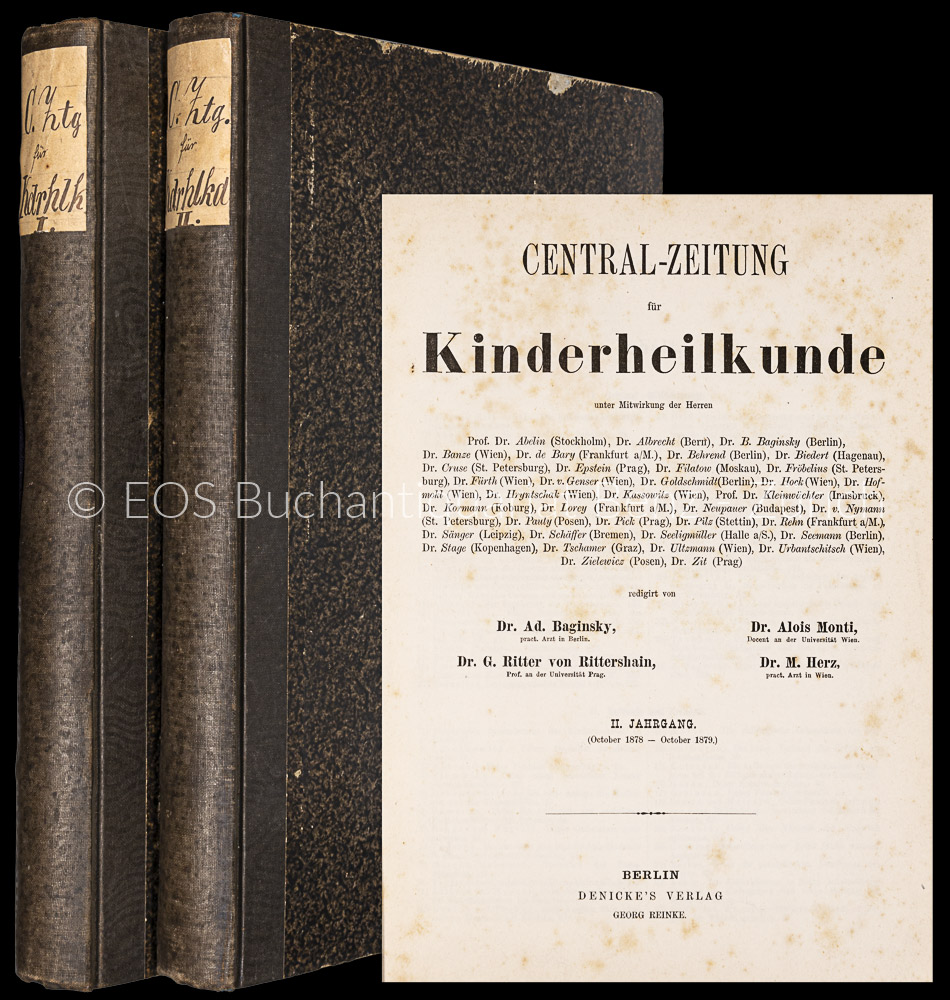 Central-Zeitung für Kinderheilkunde. Berlin, Denicke, 1877–78. 4°. Pappbände der Zeit.