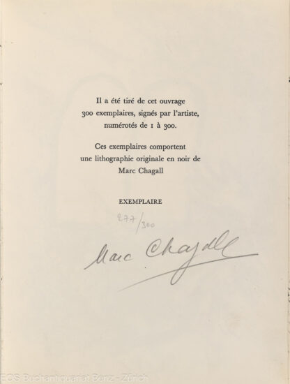 Chagall, Marc: Vitraux pour Jérusalem. Paris, Musée des arts décoratifs, 1961. 85 S. Mit ganzseitigen Illutrationen in Farbe und schwarz/weiss. Mit einer ganzseitigen Original-Lithographie. Illustrierte farbige Broschur.