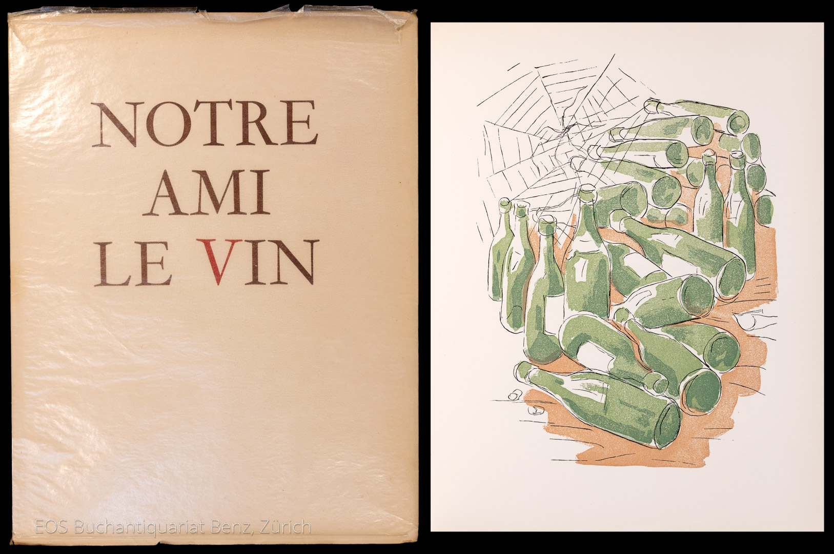 Courthion, Pierre: Notre ami le vin. Fribourg, LUF Librairie de l’Université Egloff, 1943. 4°. 123 S. Mit farb. Illustrationen von Paul Monnier. Orig.-Broschur.