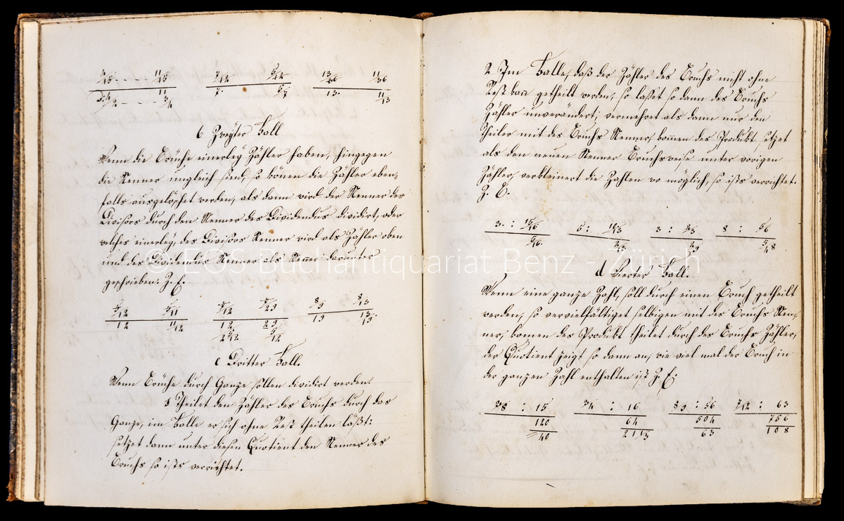 Manuscript. –  Das Rechenbuch gehört mir Rudolf Schybli zu Oterfingen. Du Rechenkunst du Knabenplag. Ohn dich beim Kaufamnn handeln mag, O Rechenkunst du bist umsonst, Wann einer nicht hat Gottes Gunst. Von mir geschrieben in den Wintern 1831, 32, 33. Kl.-4°. (119) Bl. (Handschrift). Halblederband der Zeit.