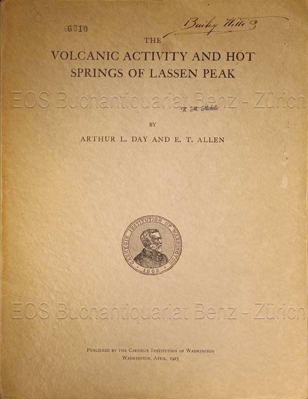 Day, Arthur L. u. Allen E.T.: Volcanic Activity and Hot Springs of Lassen Peak. Washington, Carnegie Institution, 1925. 4°. VIII, (2), 190 S. Mit 81 Abb. im Text. Orig.-Broschur.