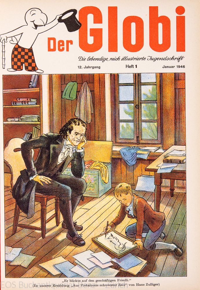 Der Globi. – Die lebendige, reich illustrierte Jugendschrift. 12. Jahrgang. Zürich, Globi-Verlag, 1946. Gr.-8°. Mit zahlr. Textillustr. u.a. von Robert Lips. Original roter Leinenband.