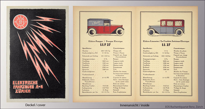Prospekt.- Elektrische Fahrzeuge A-G Zürich. Zürich, Fachschriften-Verlag, (um 1920). 8°. (2) Bl.